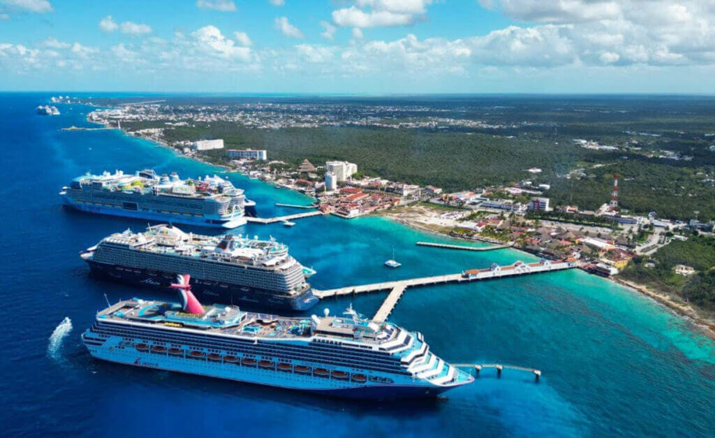 Cozumel es uno de los destinos más importantes de cruceros en el mundo. En años anteriores, ha llegado a recibir hasta 4 millones de pasajeros anuales, provenientes principalmente de Estados Unidos y Europa. La infraestructura actual incluye tres muelles: SSA México, Puerta Maya y Punta Langosta, que operan de manera constante con flujos intensos de visitantes.